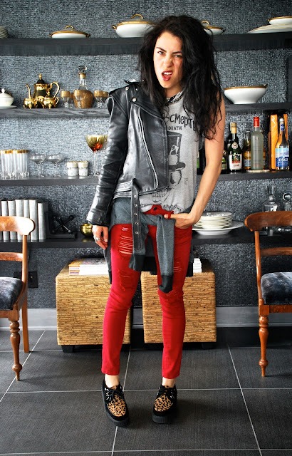 FOREVER 21 red skinnies with distress done by yours truly! ;)